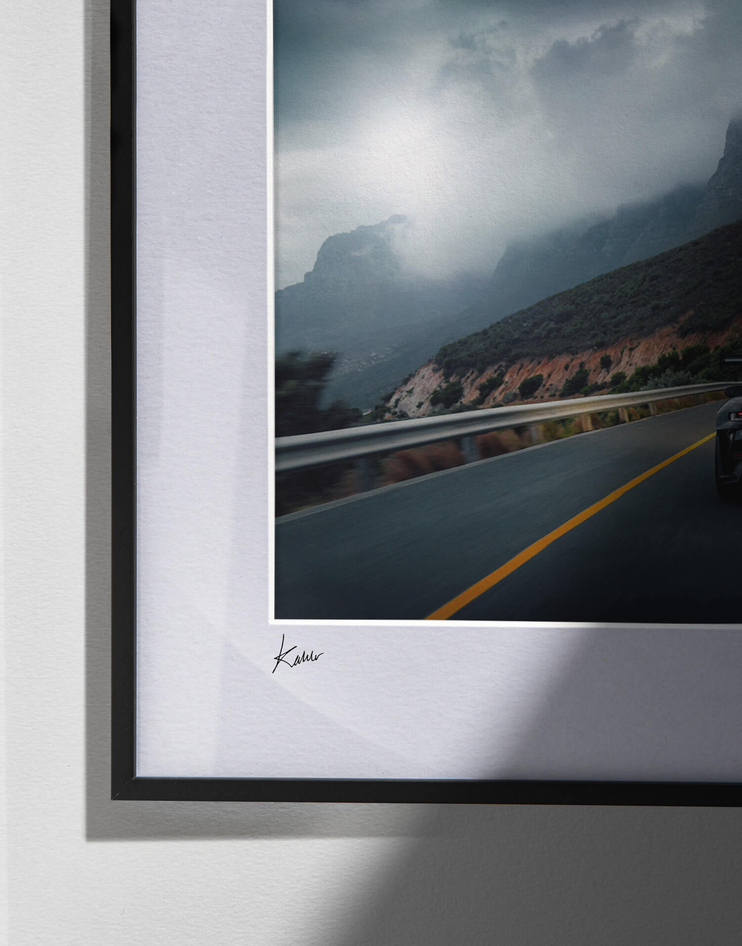 Exclusively licensed by WheelsOnWalls Gallery, printed on Canson Infinity Platine® Fibre 310 and framed with Nielsen® Profile 34 (aluminum).