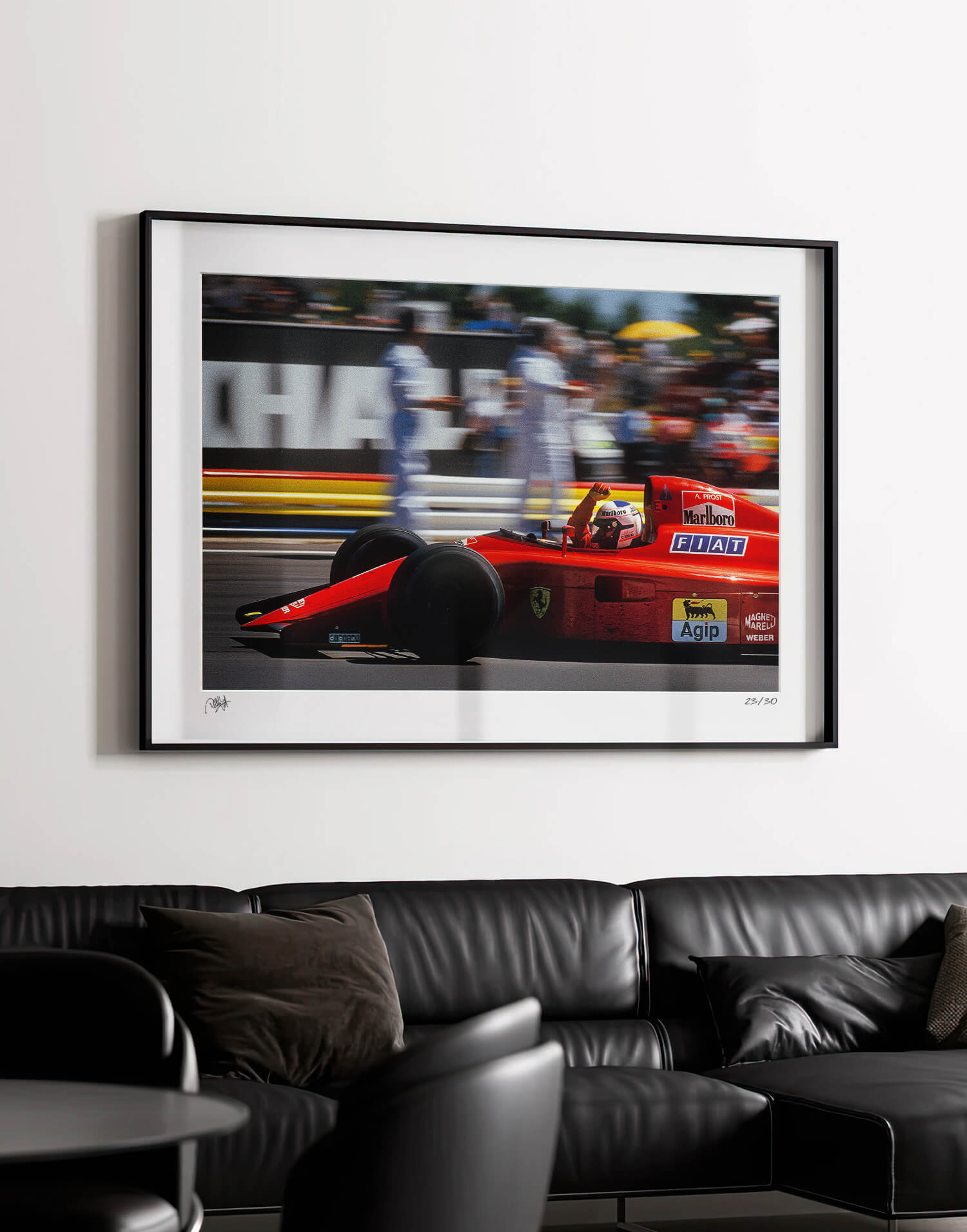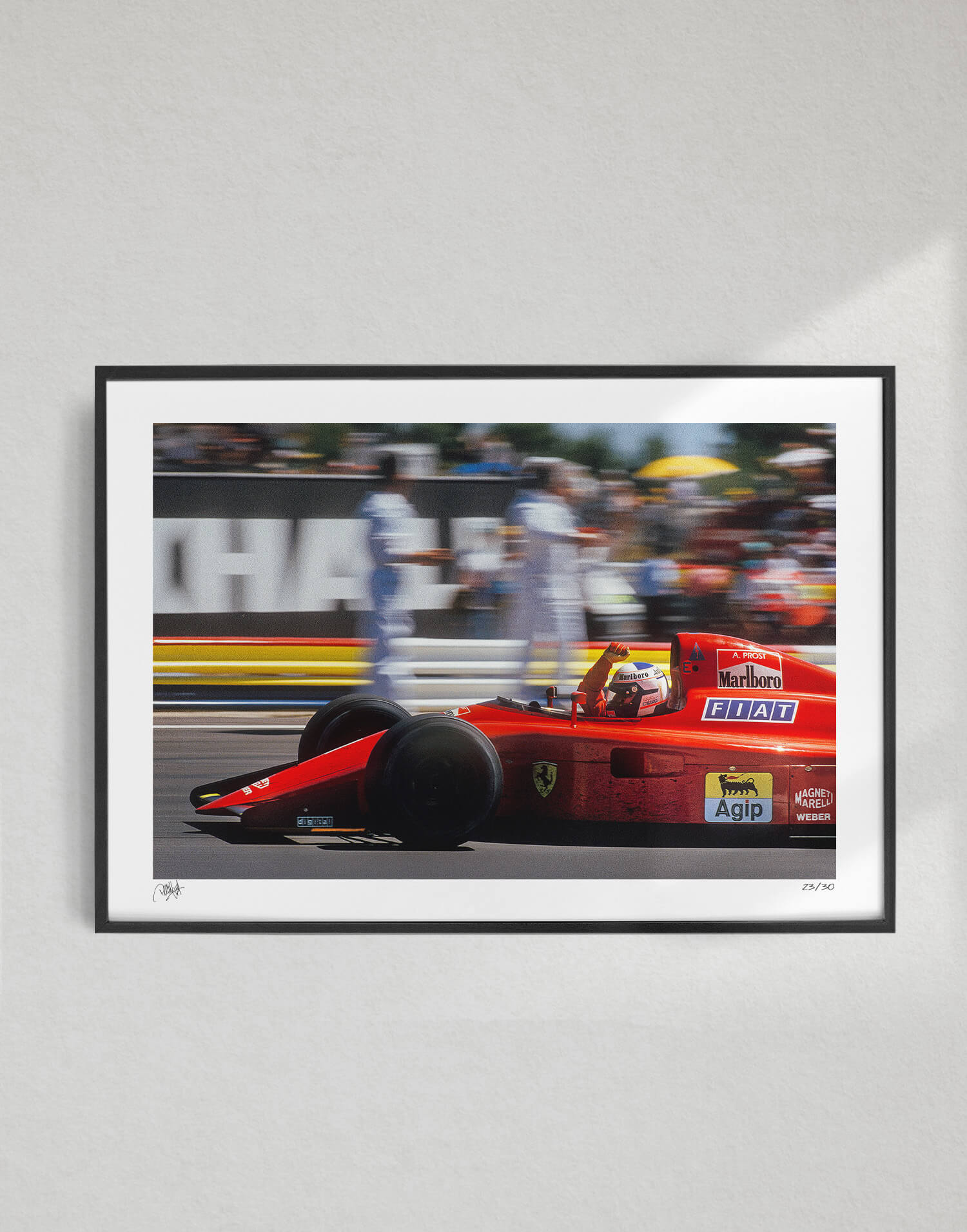 Alain Prost (Ferrari 641) wins the 1990 French Grand Prix at Paul Ricard. Framed photography print, produced in limited edition by WheelsOnWalls Gallery.