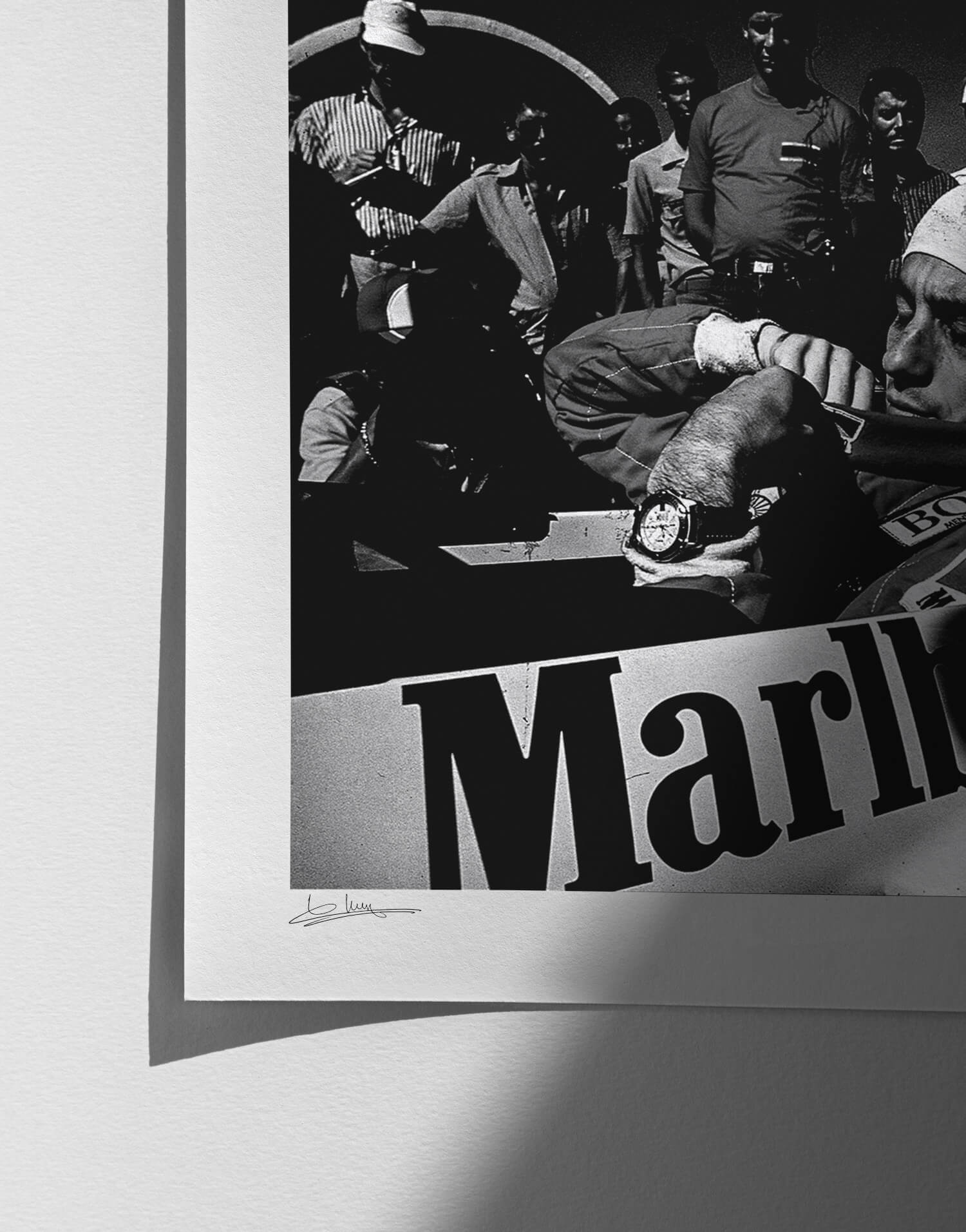 Ayrton Senna – B&W is a licensed photography print produced by WheelsOnWalls Gallery, available as a Limited Edition artwork.
