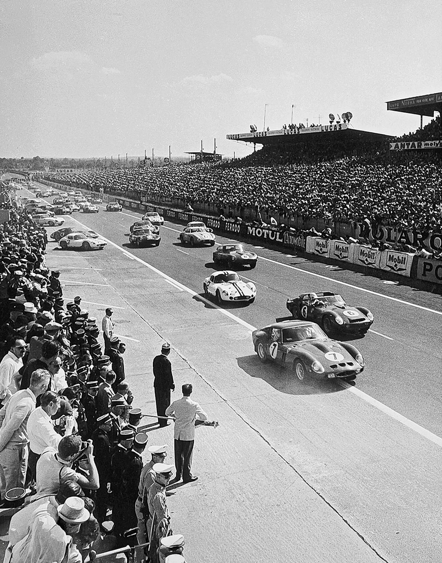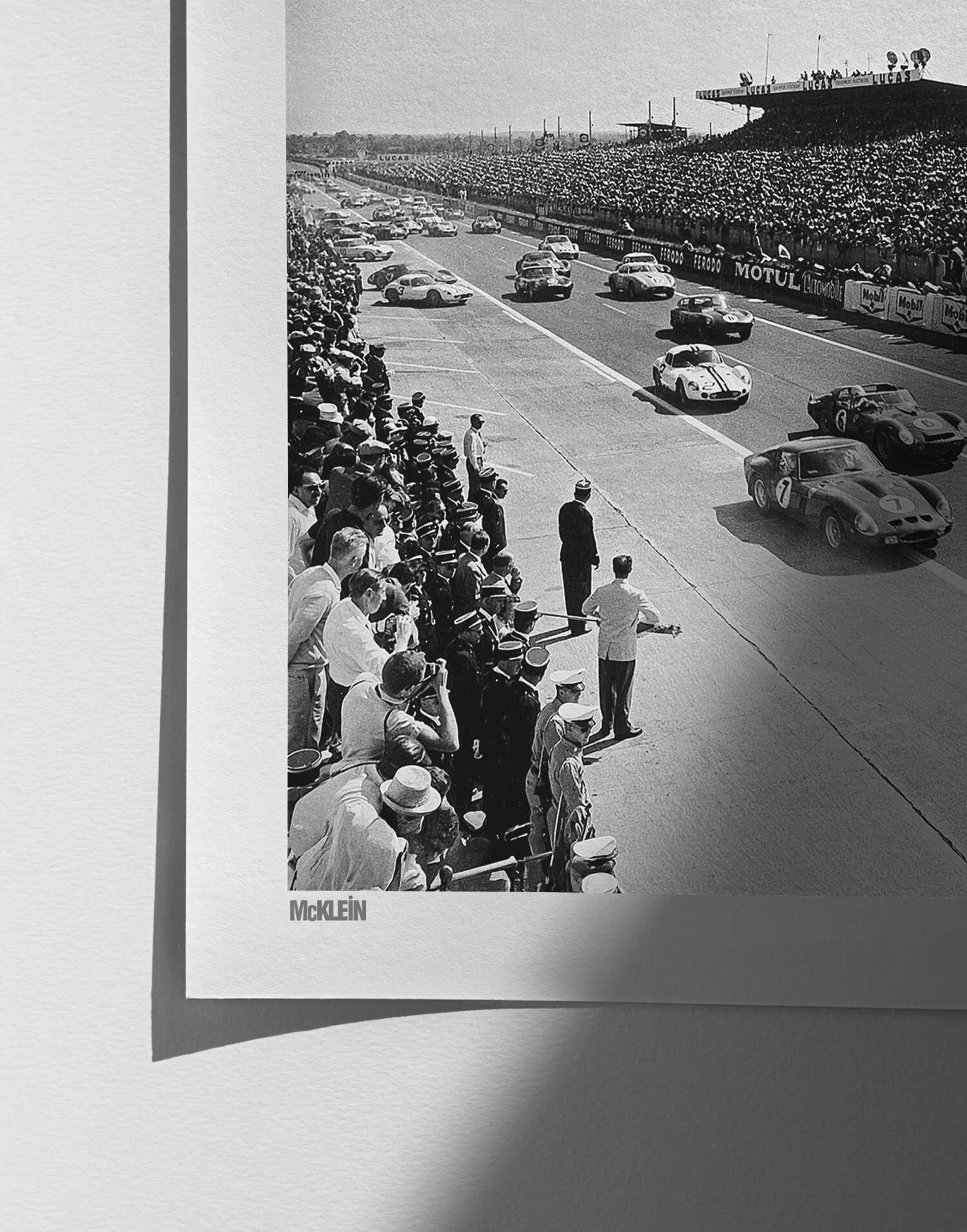 Ferrari 250 GTO of Lorenzo Bandini leading the field during the start of the 1962 24 Hours of Le Mans. Fine art photography print, produced in limited edition by WheelsOnWalls Gallery.