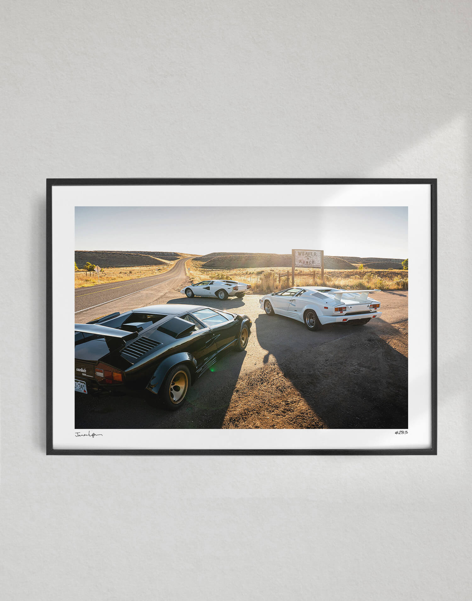 Three Countach is a licensed photography print produced by WheelsOnWalls Gallery, available as a Limited Edition artwork.