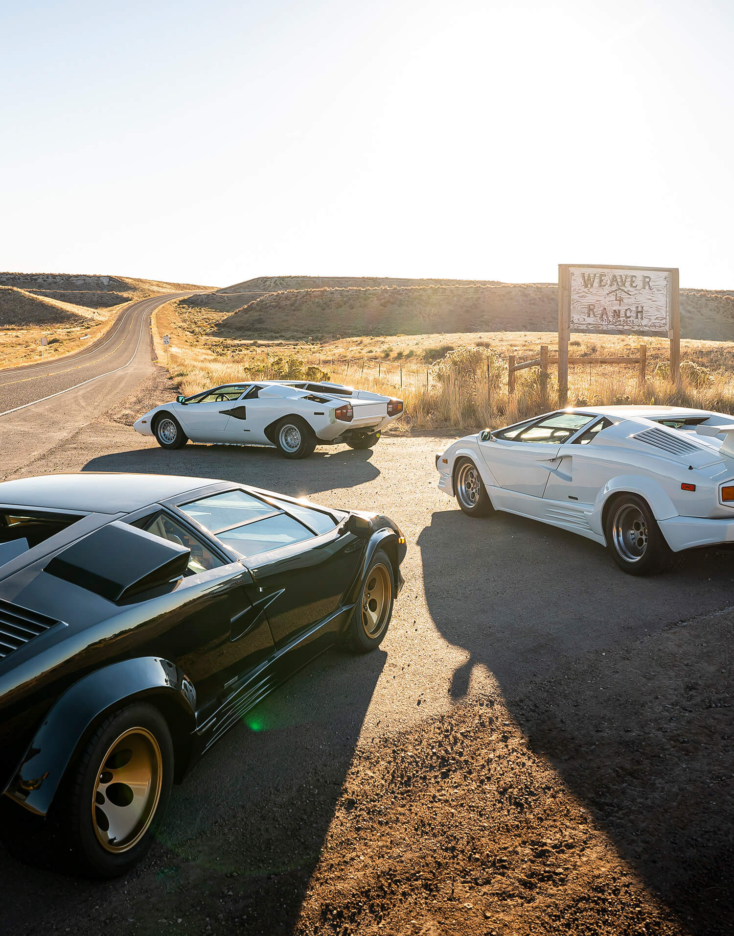This breathtaking photograph by James Lipman showcases a trio of Lamborghini legends—the 1975 LP400 “Periscopio,” the 1988 25th Anniversary, and the 1988 5000QV—all beautifully lined up on a picturesque Colorado road! It’s a fantastic tribute to the iconic Italian supercars of the 80s, capturing their stunning design and heritage in one magnificent shot.