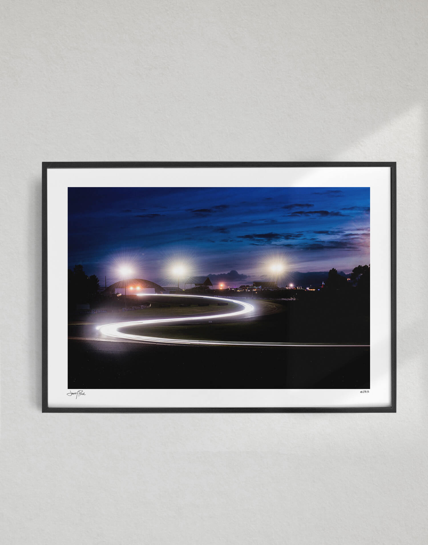 24 Hours of Le Mans – Nighttime ist ein lizenziertes Fotokunstwerk, produziert von WheelsOnWalls Gallery und als limitierte Edition erhältlich.