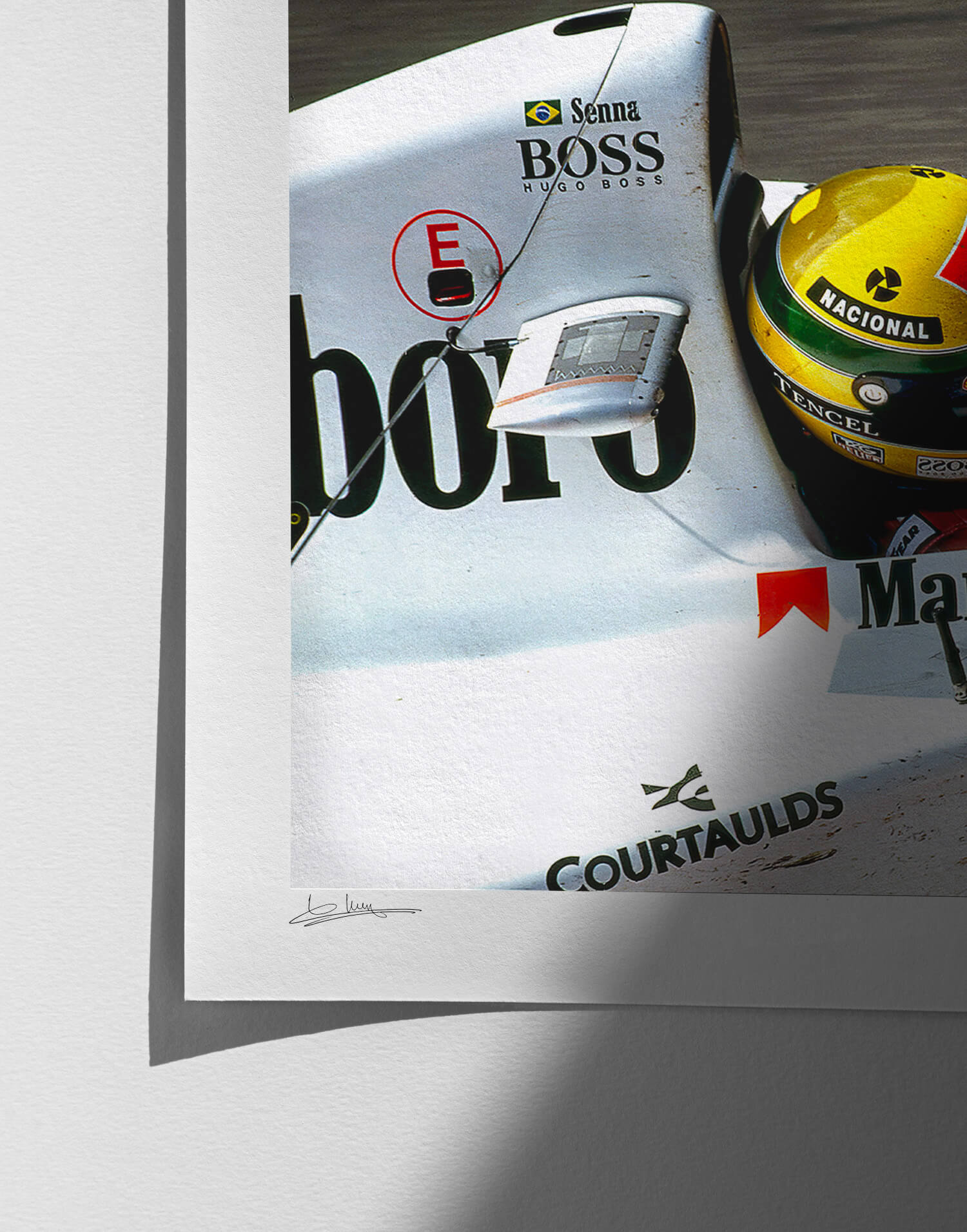 Ayrton Senna – McLaren ist ein lizenziertes Fotokunstwerk, produziert von WheelsOnWalls Gallery und als limitierte Edition erhältlich.