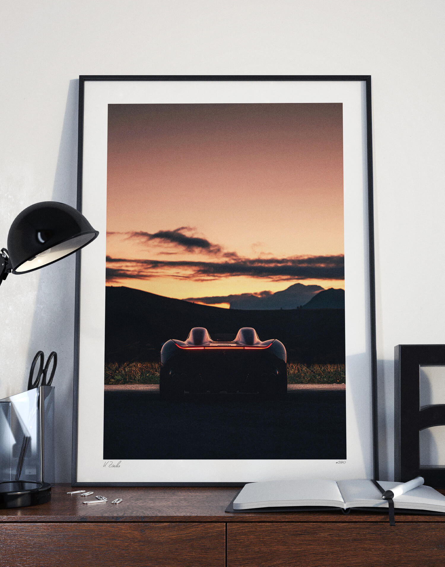 Exklusiv lizenziert von der WheelsOnWalls Galerie, gedruckt auf Canson Infinity Platine® Fibre 310 und gerahmt mit Nielsen® Profil 34 (Aluminium).