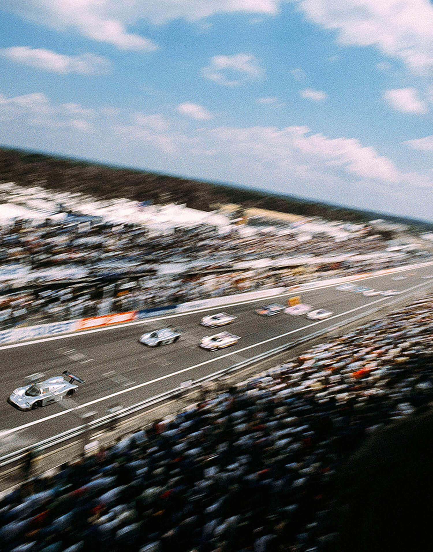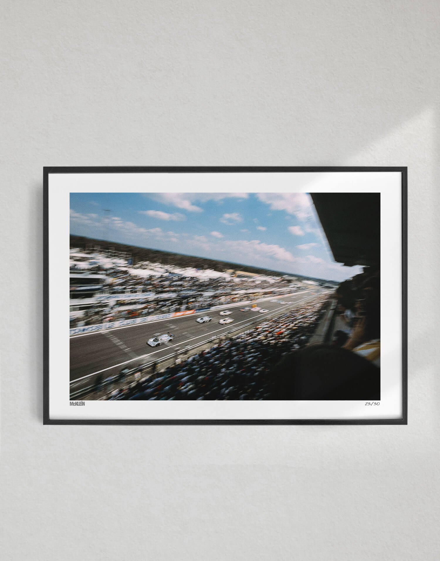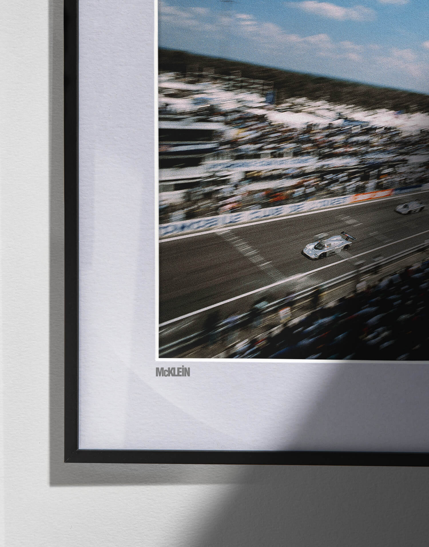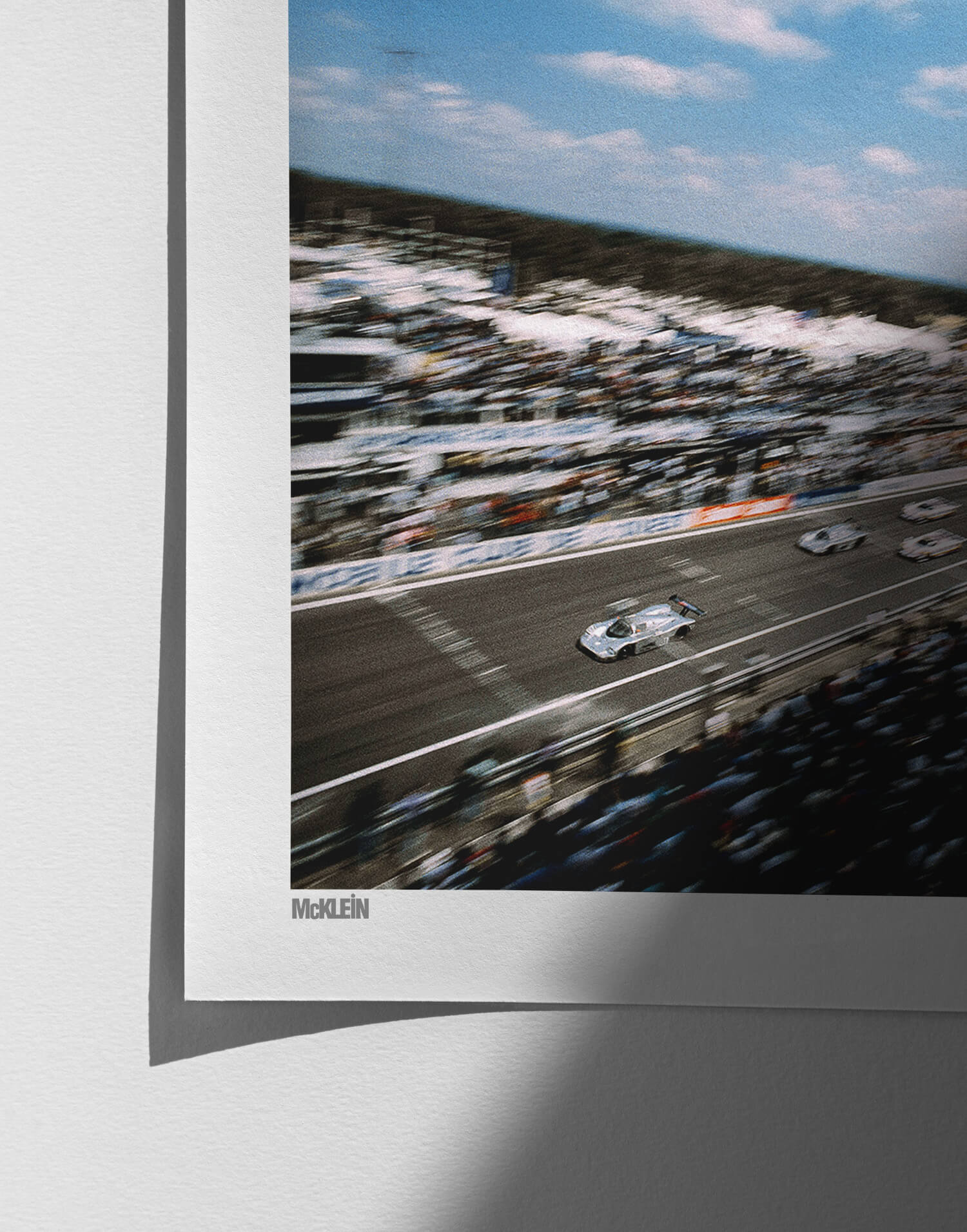 24 Stunden von Le Mans 1989, mit dem Sauber-Mercedes C9 in Führung des Feldes. Gerahmter Fotodruck, in limitierter Auflage produziert von WheelsOnWalls Gallery.