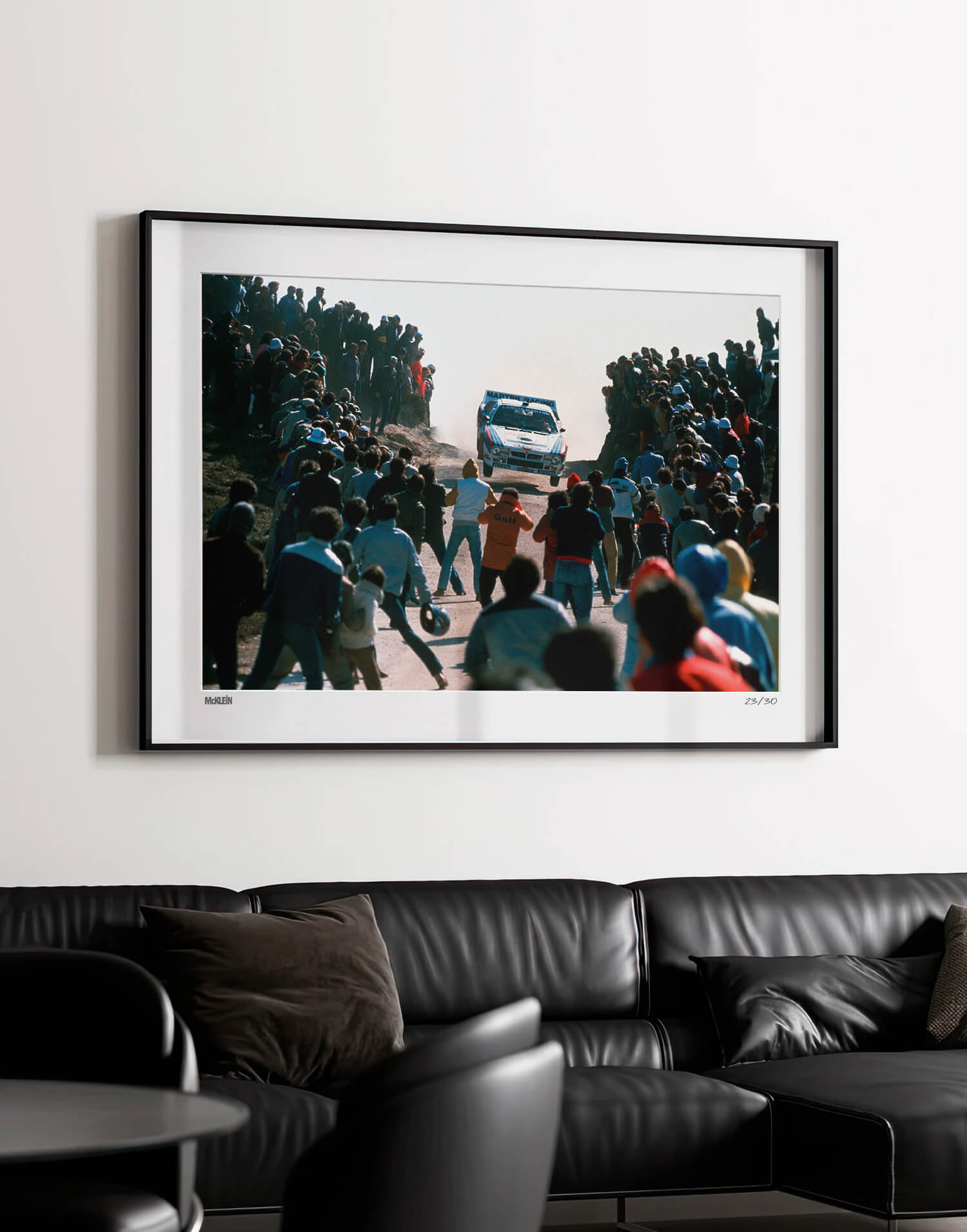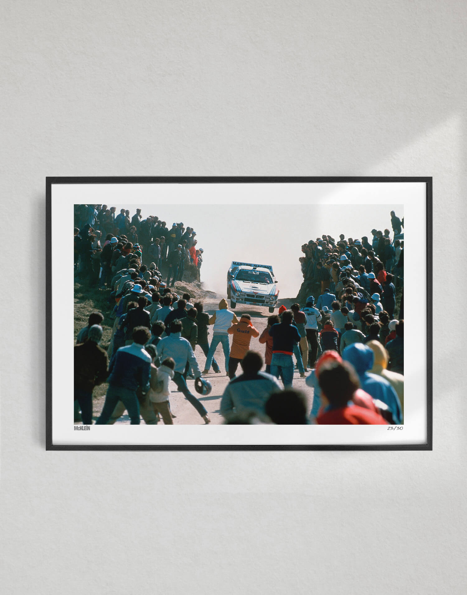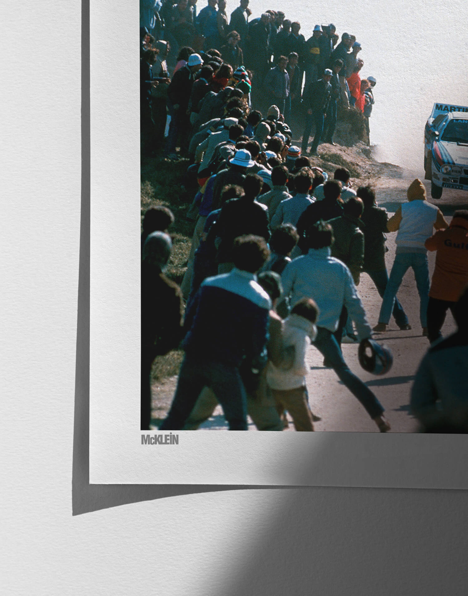 Locura del Grupo B en una fotografía. Esta obra icónica e impresionante de la colección McKlein captura toda una era del rally, con el Lancia 037 del italiano Betega. Una pieza imprescindible para los apasionados del rally.