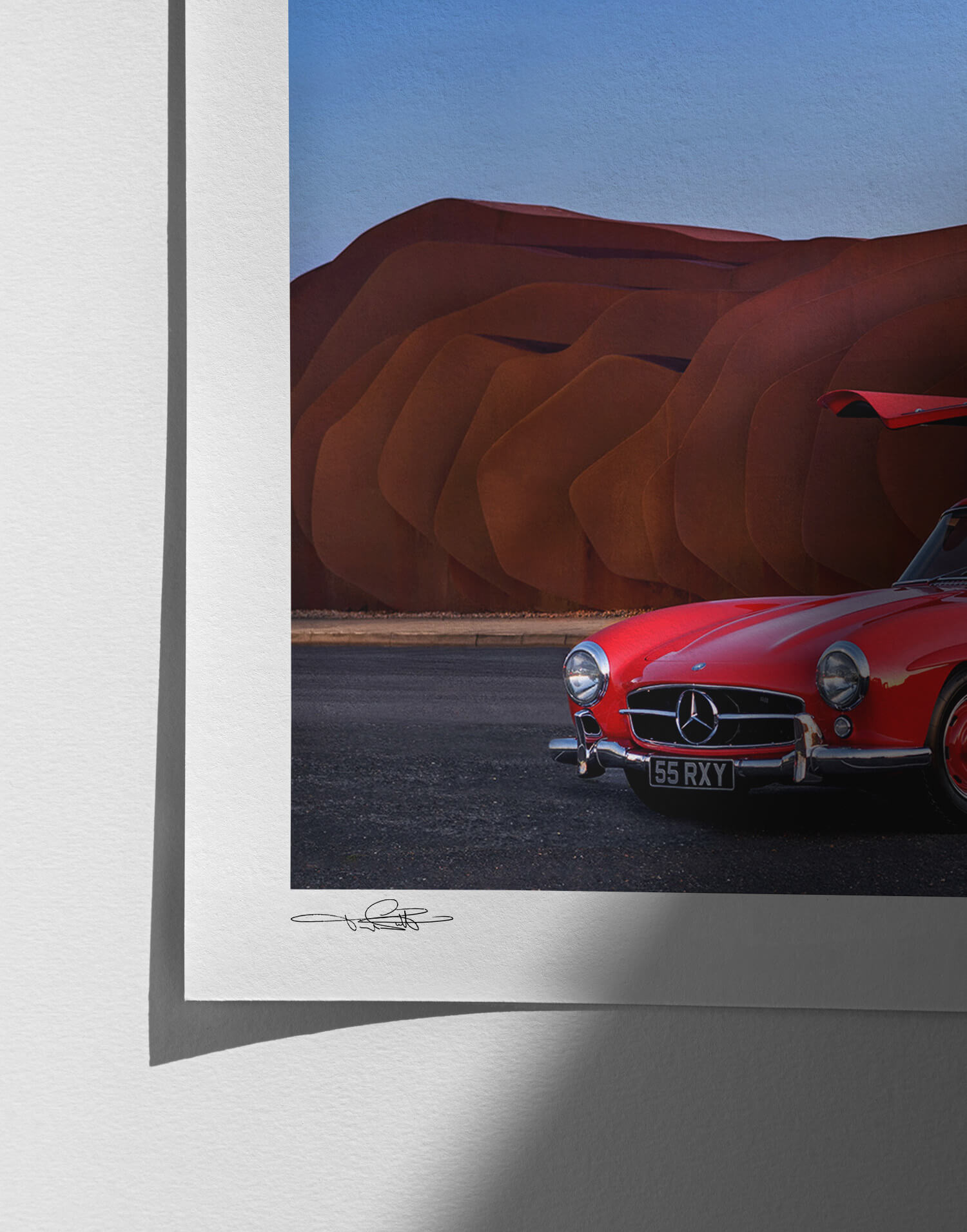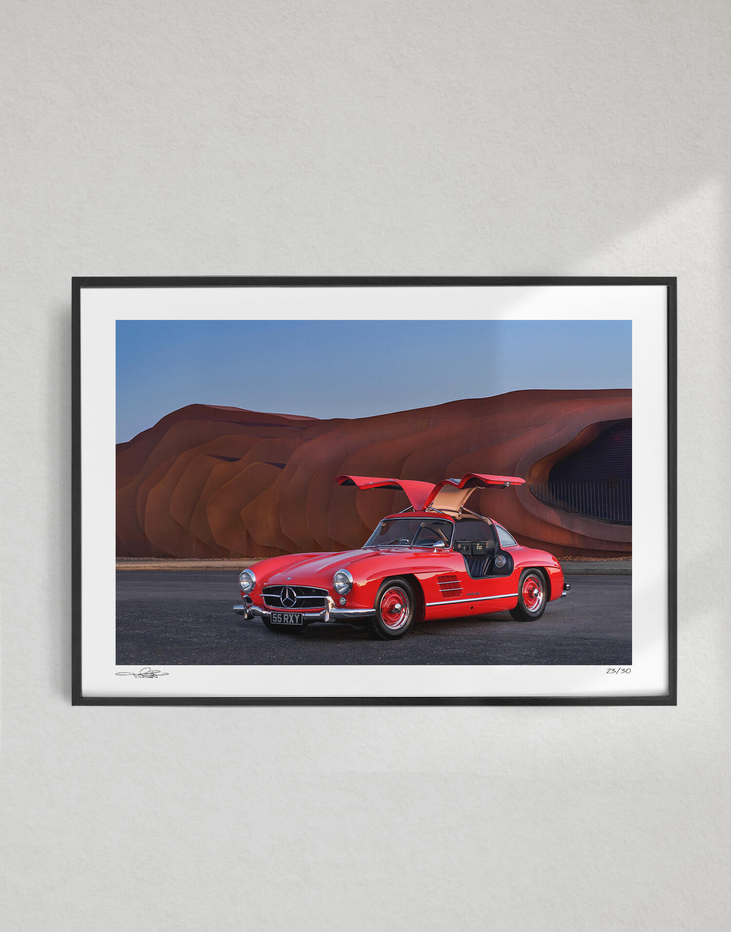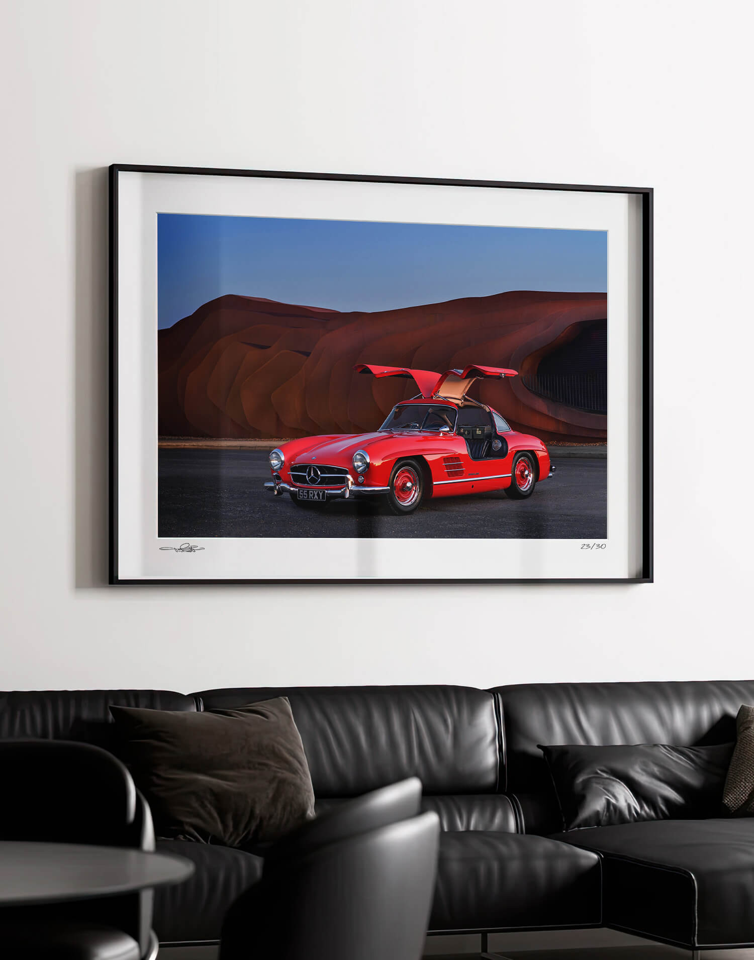 The Red Gullwing es una obra fotográfica con licencia, producida por WheelsOnWalls Gallery y disponible en edición limitada.