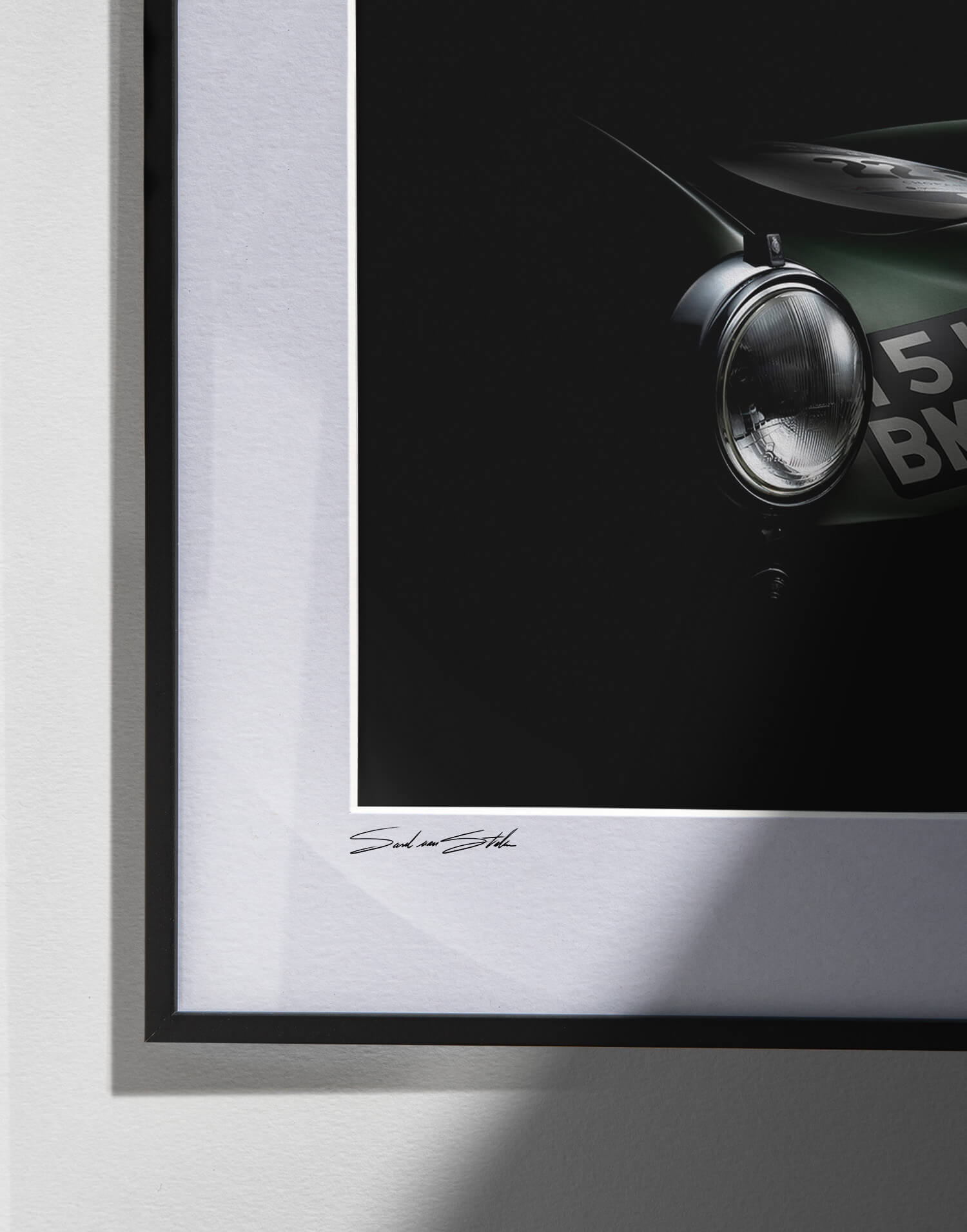 1952 Aston Martin DB3 es una obra fotográfica con licencia, producida por WheelsOnWalls Gallery y disponible en edición limitada.
