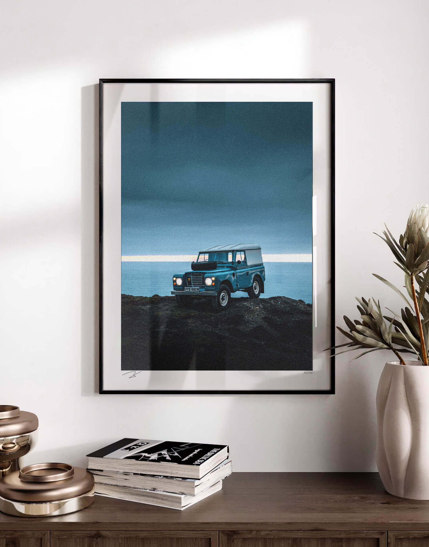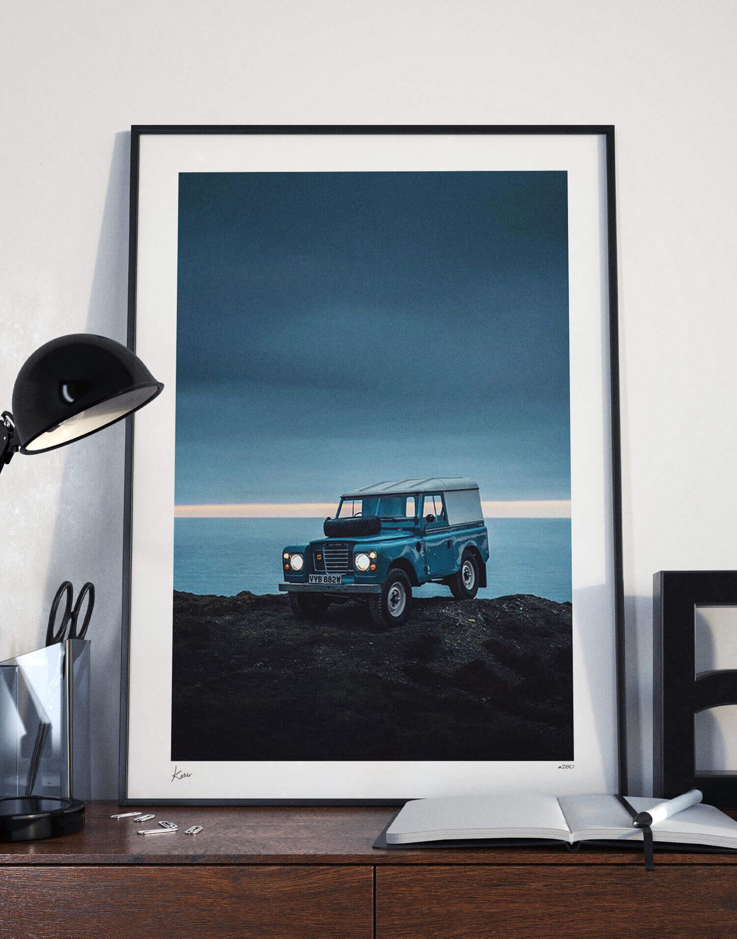 1980 Land Rover Series III es una obra fotográfica con licencia, producida por WheelsOnWalls Gallery y disponible en edición limitada.