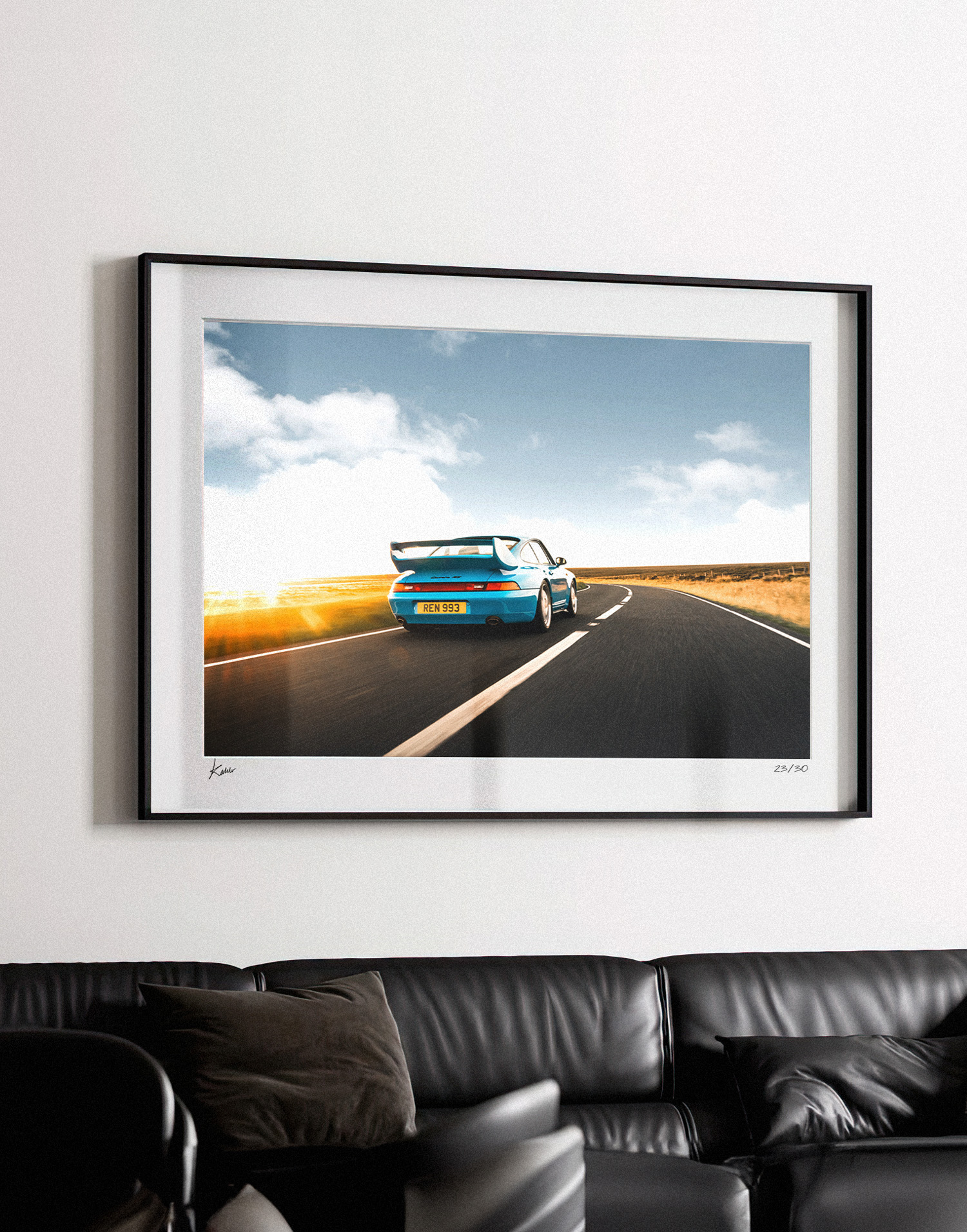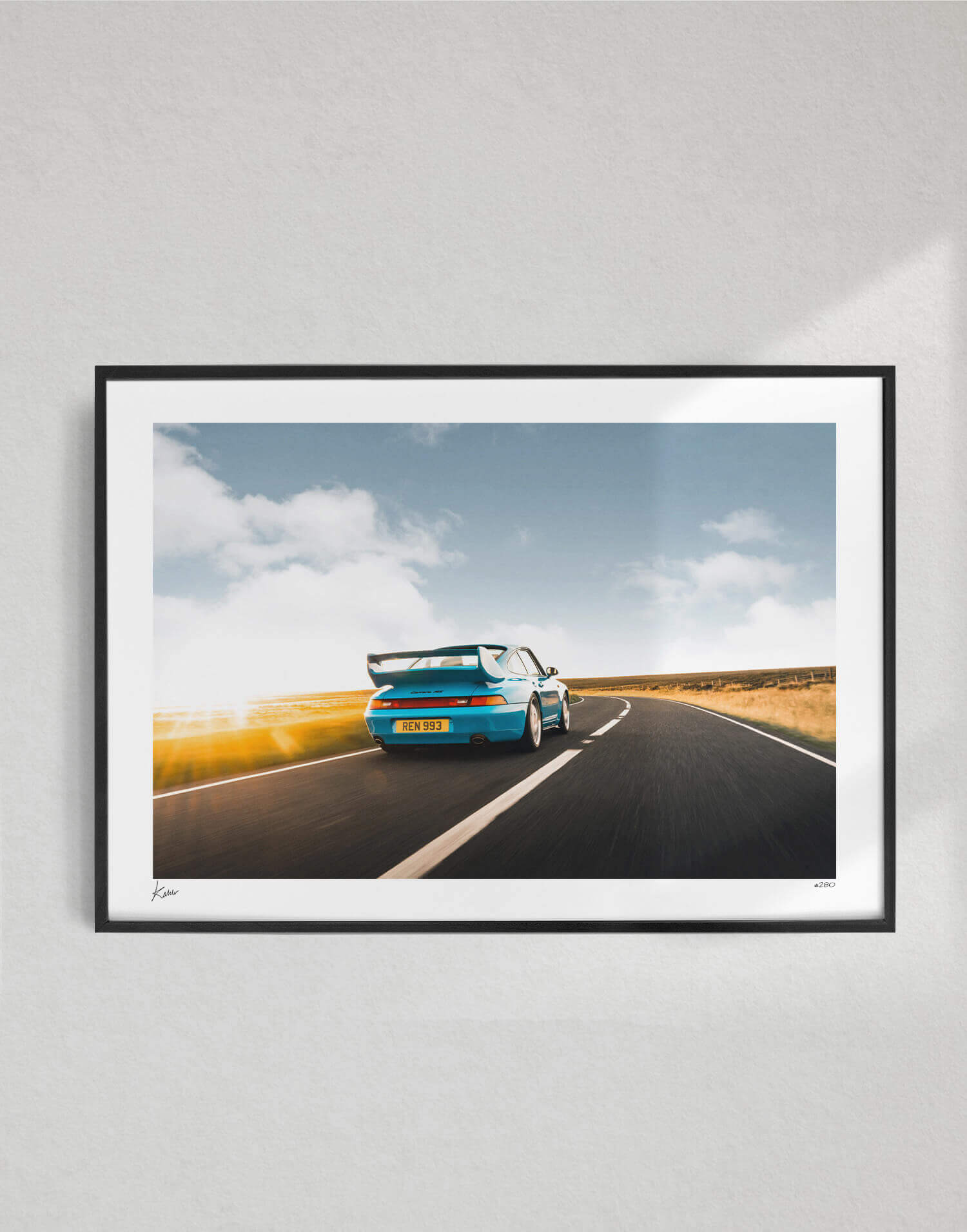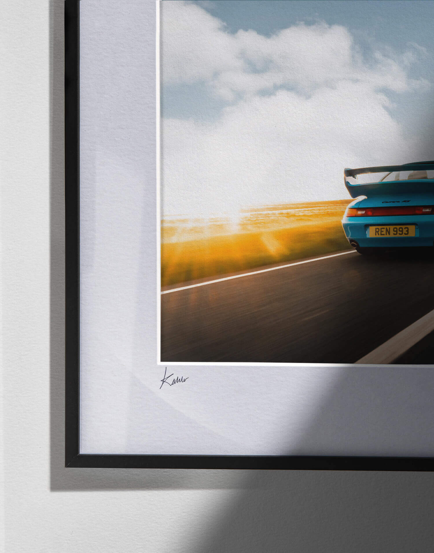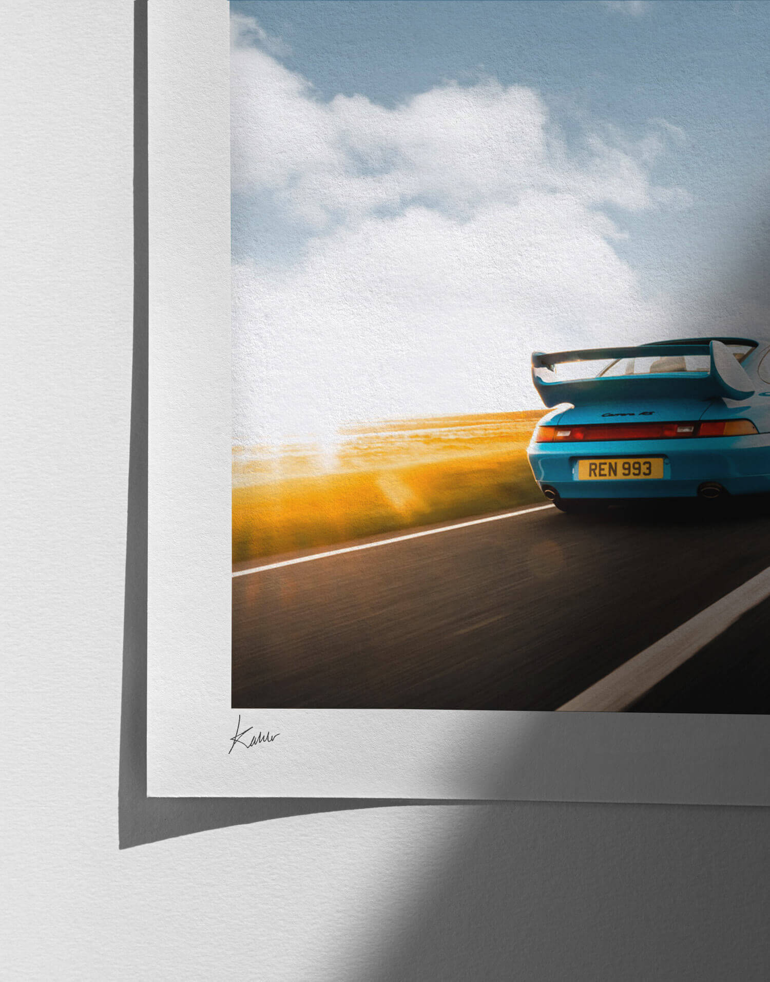 1995 Porsche 993 RS es una obra fotográfica con licencia, producida por WheelsOnWalls Gallery y disponible en edición limitada.