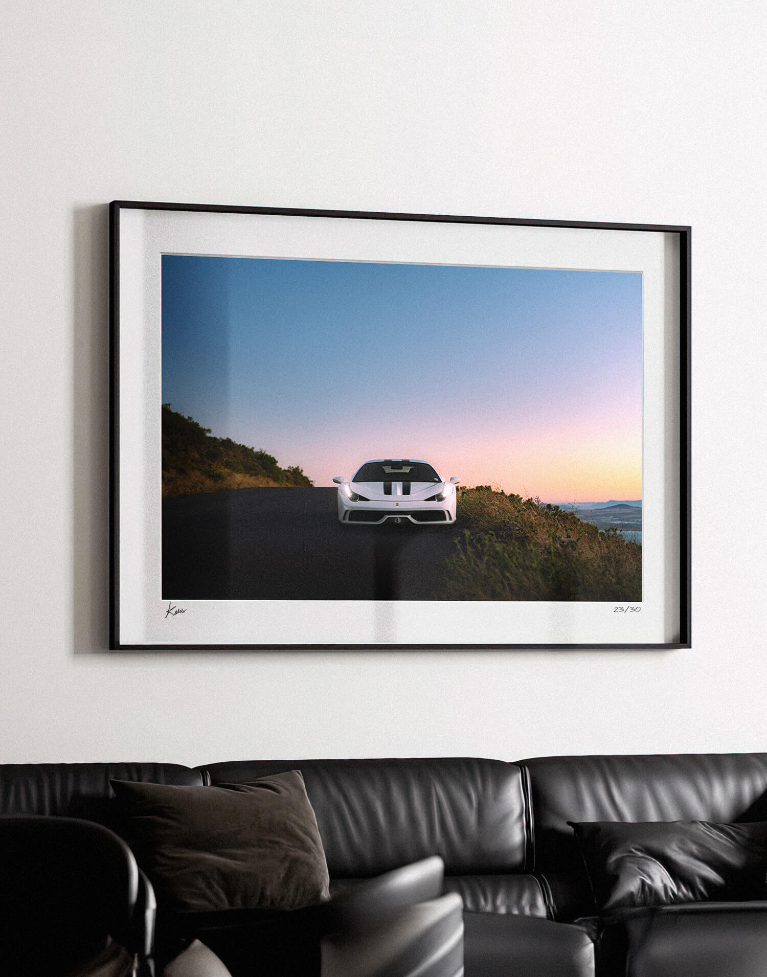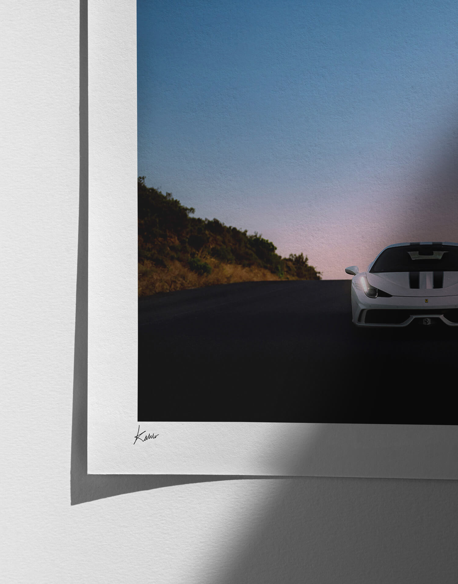2013 Ferrari 458 Speciale es una obra fotográfica con licencia, producida por WheelsOnWalls Gallery y disponible en edición limitada.