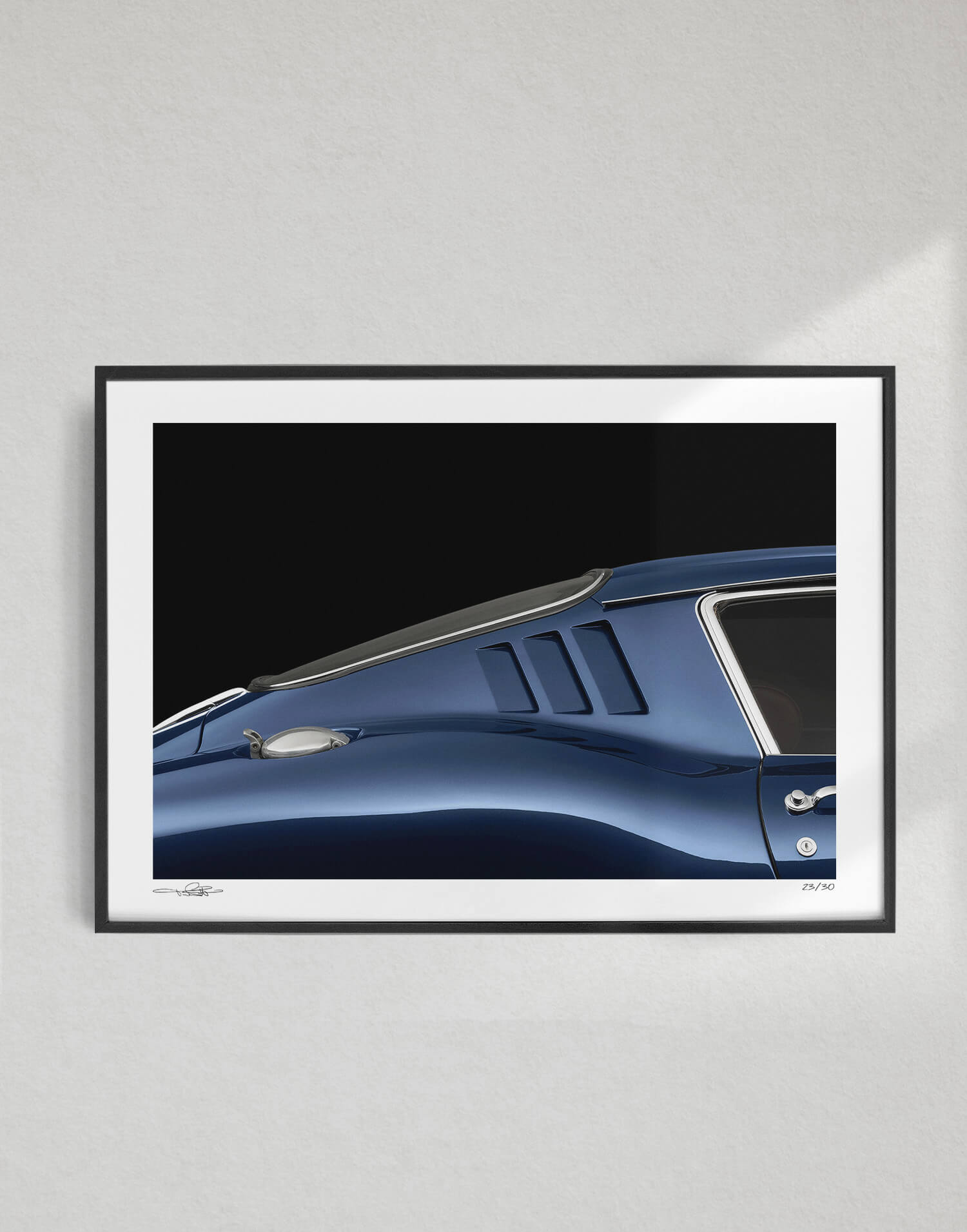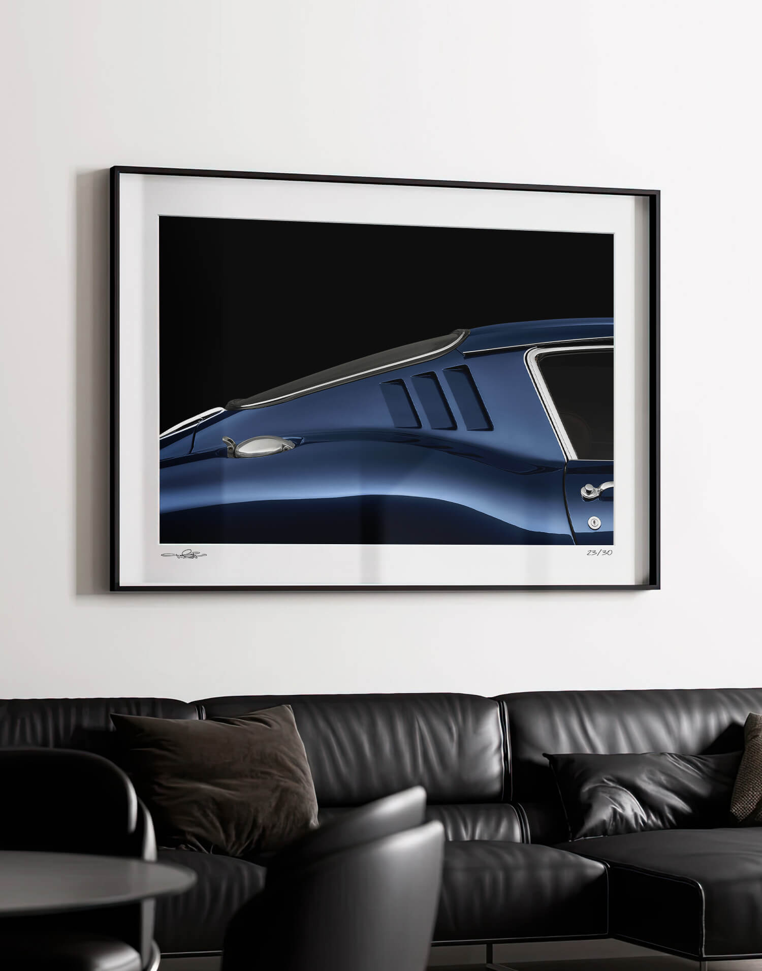 Blue Sera 275 GTB es una obra fotográfica con licencia, producida por WheelsOnWalls Gallery y disponible en edición limitada.