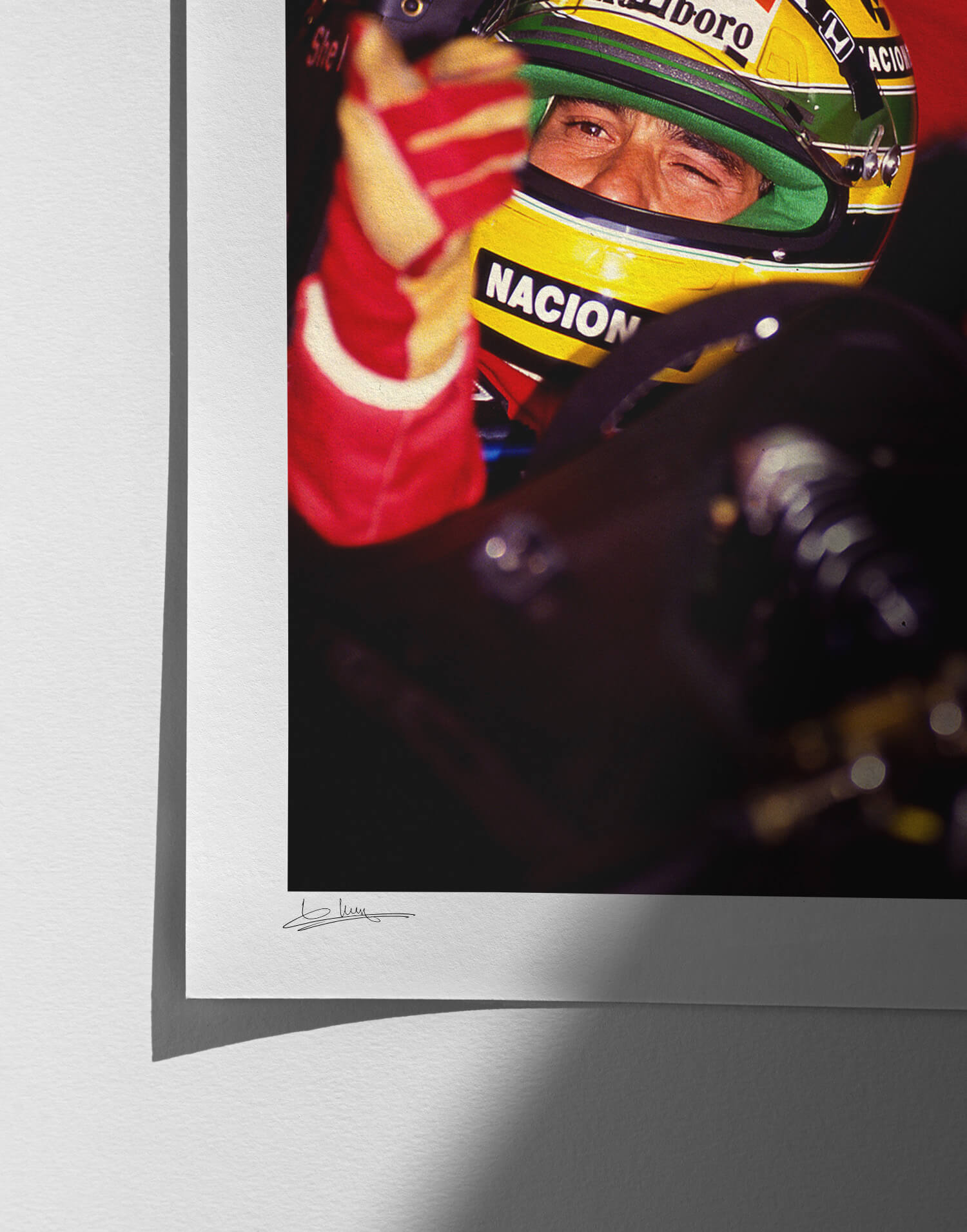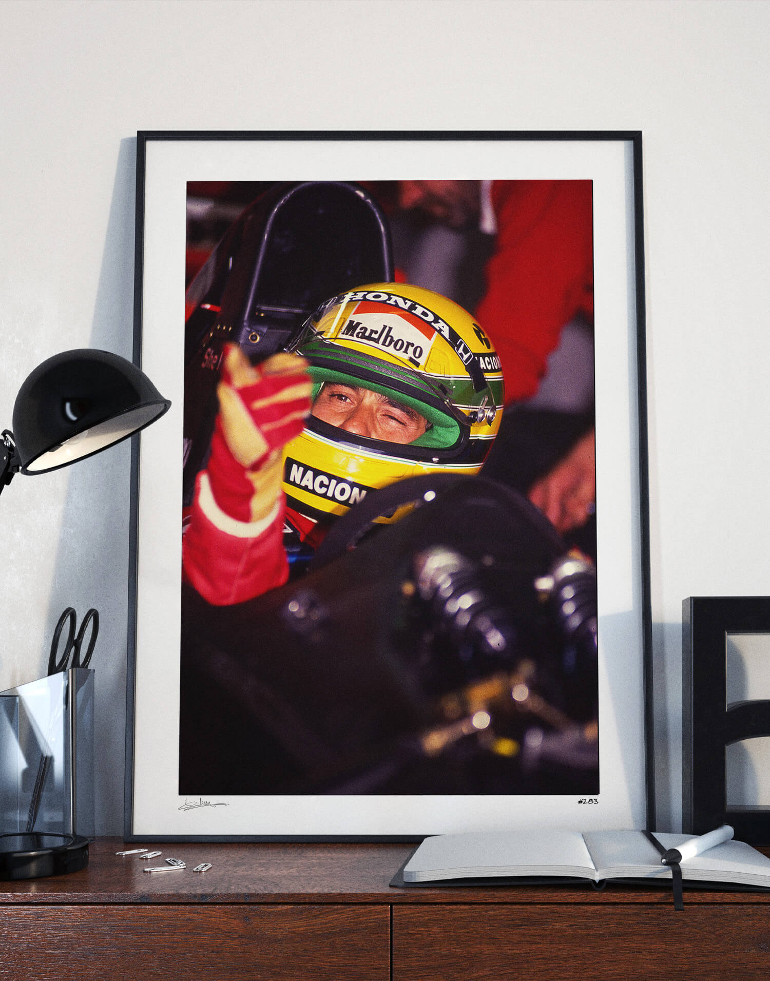 Ayrton Senna – McLaren – 1990 est un tirage photographique sous licence, produit par WheelsOnWalls Gallery et disponible en édition limitée.