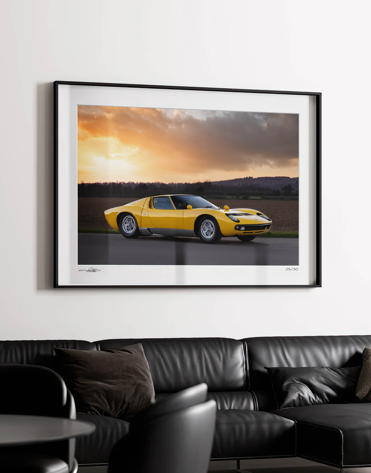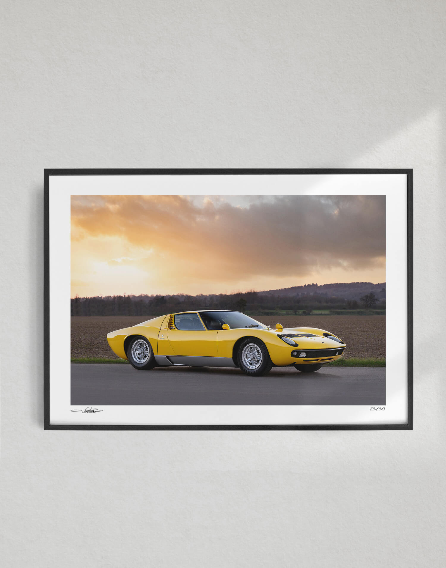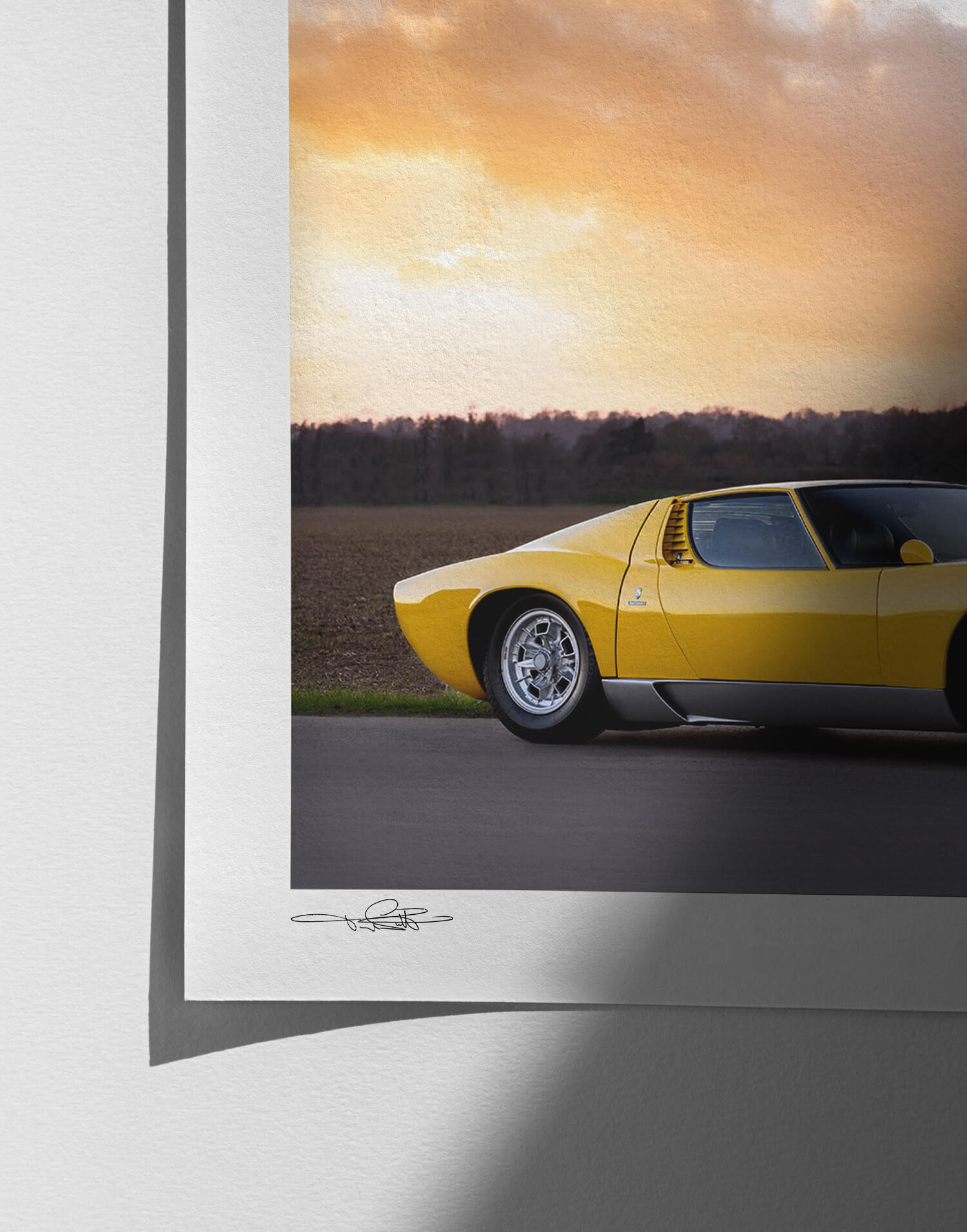 Miura P400 by Bertone est un tirage photographique sous licence, produit par WheelsOnWalls Gallery et disponible en édition limitée.